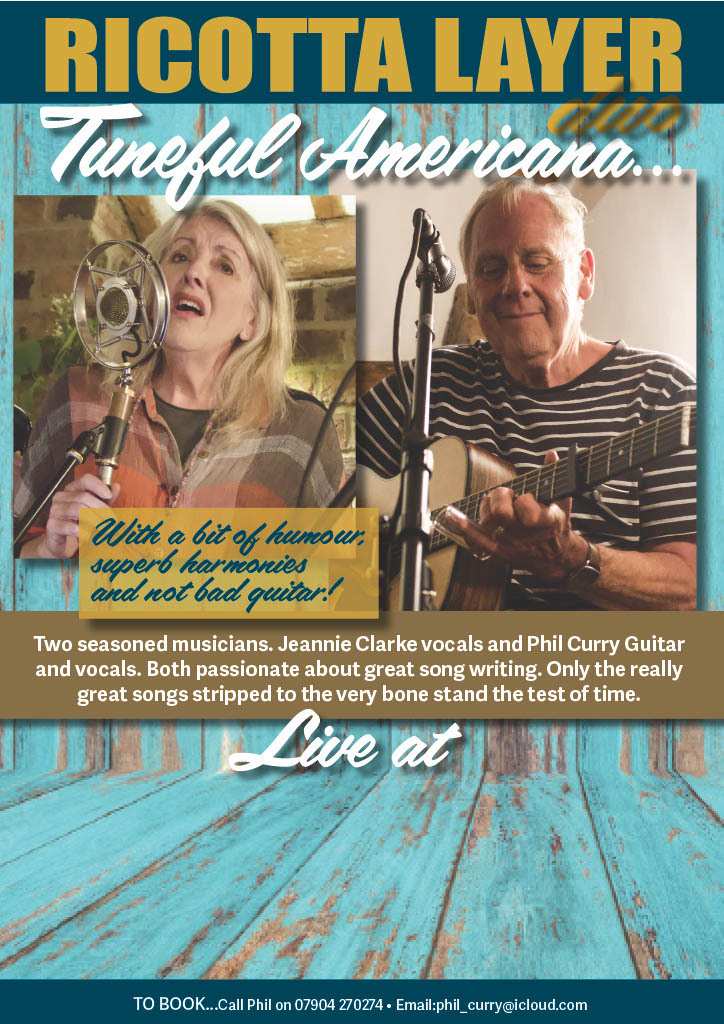 Two seasoned musicians, Jeannie Clarke vocals & Phil Curry guitar and vocals. Both passionate about great song writing - only the really great songs, stripped to the very bone, stand the test of time.